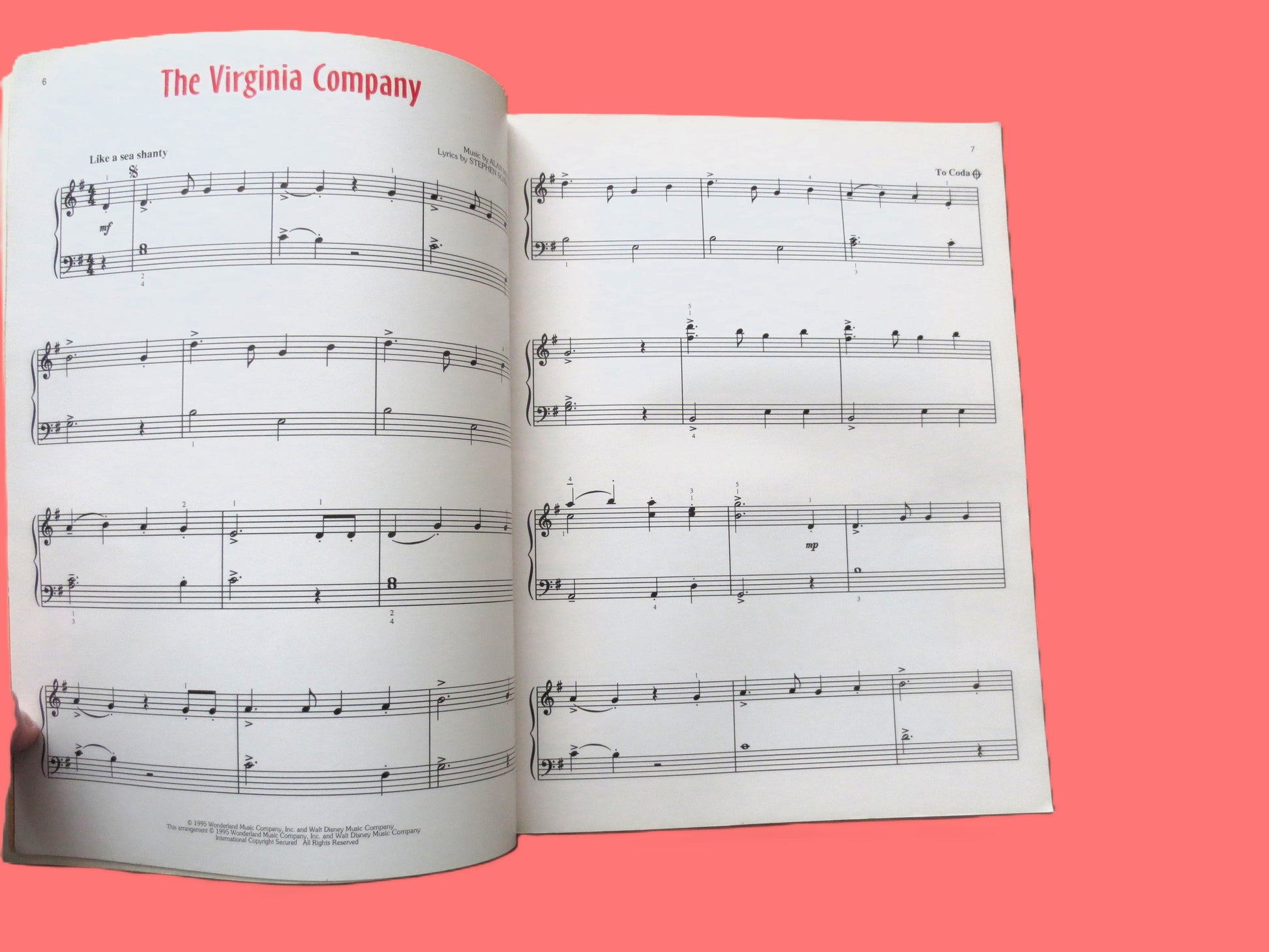 POCAHONTAS, SHEET MUSIC, Disney Songbook, Vintage 1995 Songbook