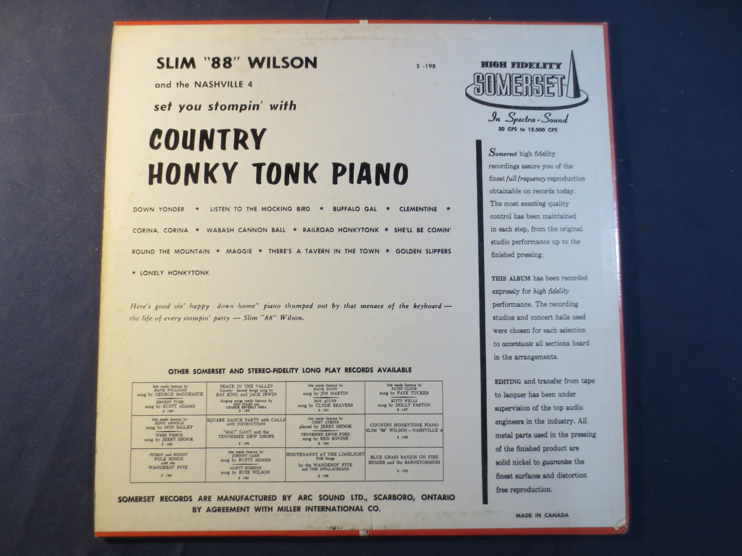 SLIM 88 WILSON, Country HONKY Tonk, Ragtime Records, Ragtime Piano, Honkytonk Piano, Record Vinyl, Record, Vinyl Record, Lp